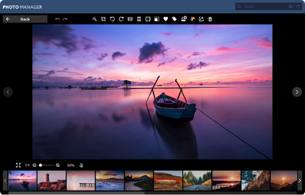 Edit images: Work with individual photos or batch-process multiple images: crop, flip, rotate, and resize, straighten horizon, enhance quality, rename, and more.