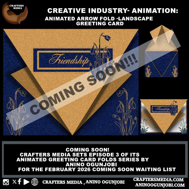 Episode 3 of Crafters Media Animated Greeting Card Fold series by Anino Ogunjobi is on a coming soon waiting list and, it will launch in February 2026.